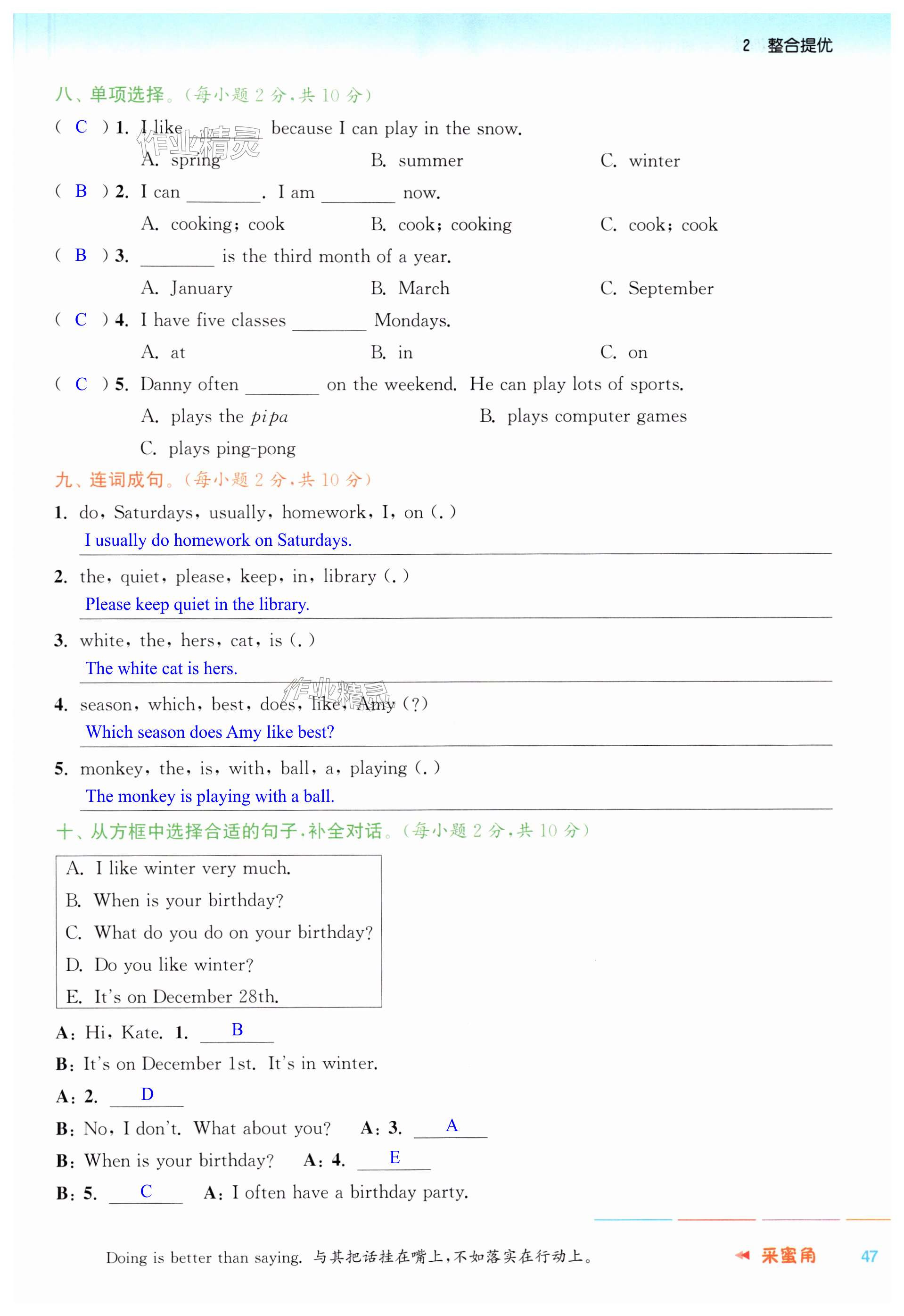 注:目前有些书本章节名称可能整理的还不是很完善,但都是按照顺序排列的,请同学们按照顺序仔细查找。练习册 2025年暑期升级训练浙江教育出版社五年级英语人教版 答案主要是用来给同学们做完题方便对答案用的,请勿直接抄袭。