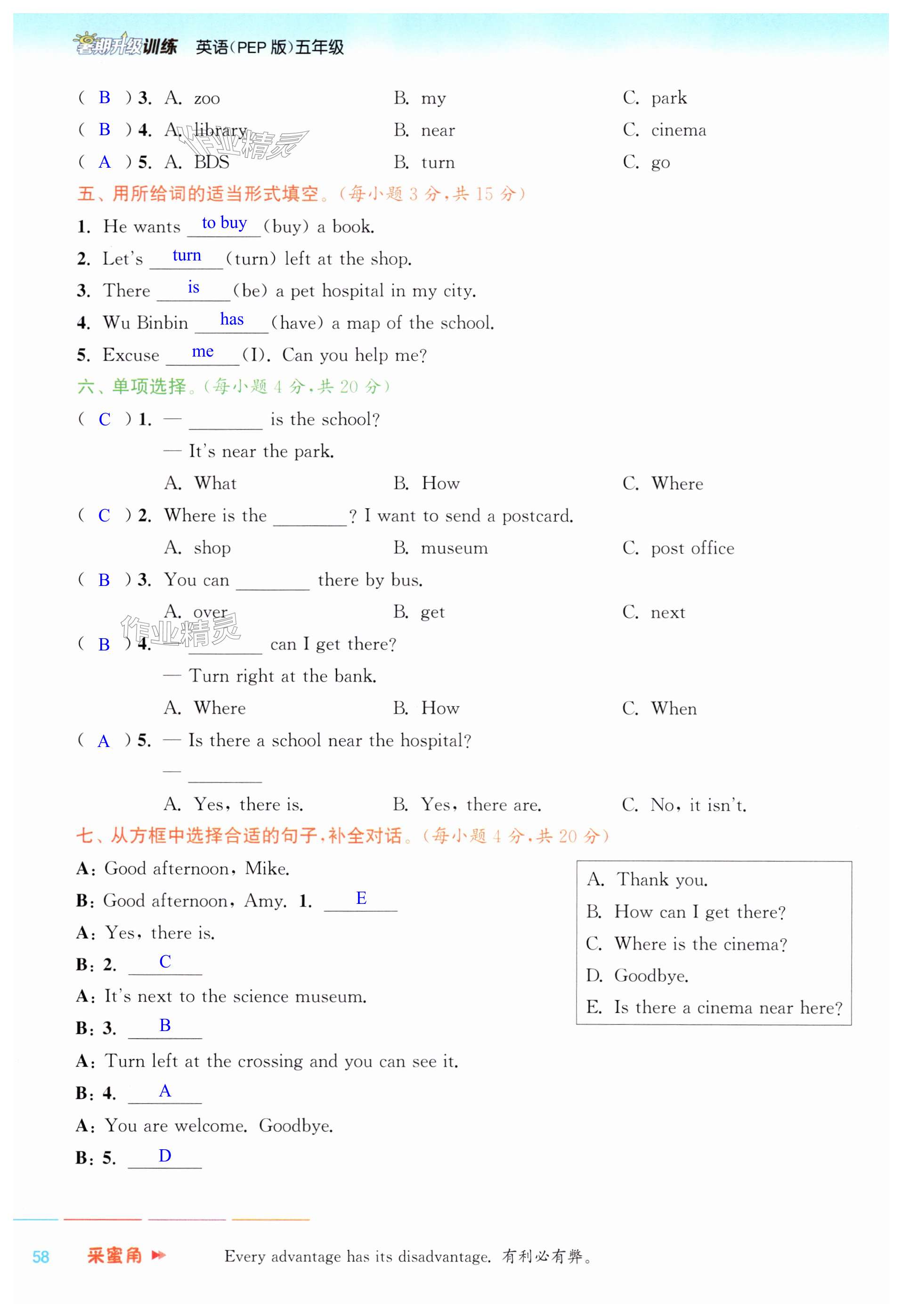 注:目前有些书本章节名称可能整理的还不是很完善,但都是按照顺序排列的,请同学们按照顺序仔细查找。练习册 2025年暑期升级训练浙江教育出版社五年级英语人教版 答案主要是用来给同学们做完题方便对答案用的,请勿直接抄袭。