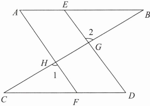 4. 如下图,已知 E,F 分别是 AB 和 CD 上的点,DE,AF 分别交 BC 于 G,H,∠A= ∠D,∠1= ∠2,求证:∠B= ∠C.