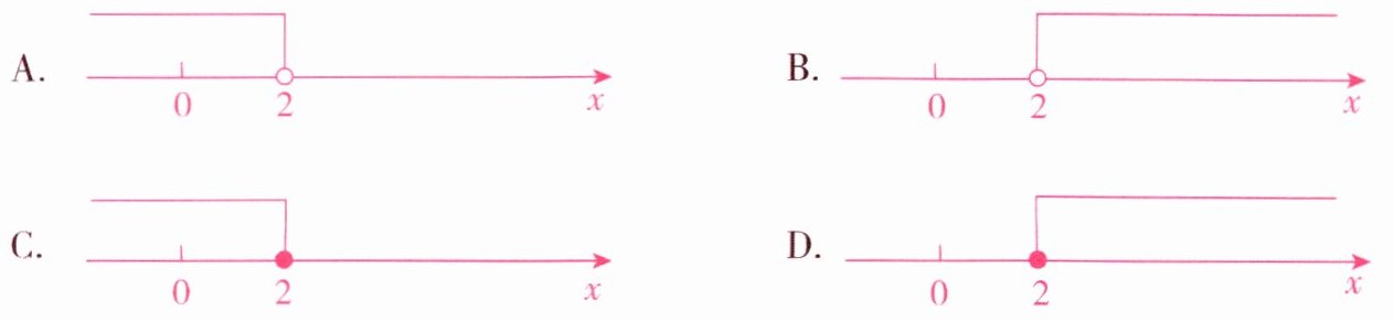 4. 函数$y= \frac {2}{\sqrt {x-2}}的自变量x$的取值范围在数轴上可表示为( ).