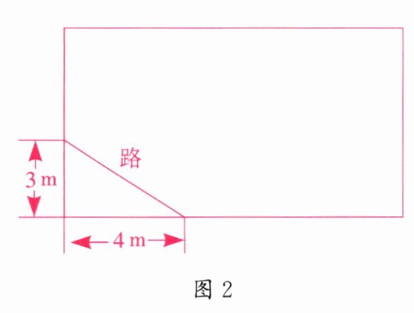 2. 如图2,学校有一块长方形花园,有极少数人为了避开拐角而走“捷径”,在花园内走出了一条“路”。他们仅仅少走了______步路(假设2步为1m),却踩伤了花草。
