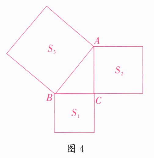 4. 如图4,以Rt△ABC的三边为边向外作正方形,其面积分别为$S_{1}$,$S_{2}$,$S_{3}$,则$S_{1}$,$S_{2}$,$S_{3}$的关系为______。