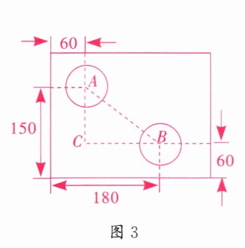 3. 图3是一个外轮廓为矩形的机器零件的平面示意图,根据图中的尺寸(单位:mm),计算两圆孔中心A和B的距离为______mm。