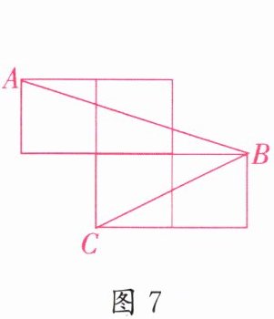2. 如图7,每个小正方形的边长为1,$A$,$B$,$C$是小正方形的顶点,则$∠ABC$的度数为( )。