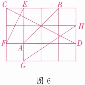 1. 如图6,在单位正方形组成的网格图中标有$AB$,$CD$,$EF$,$GH$四条线段,其中能构成直角三角形三边的线段是( )。
