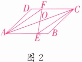 6. 如图 2,已知 $O$ 为平行四边形 $ABCD$ 的对角线 $AC$ 的中点,$EF$ 经过点 $O$,且与 $AB$ 交于 $E$,与 $CD$ 交于 $F$。求证:四边形 $AECF$ 是平行四边形。