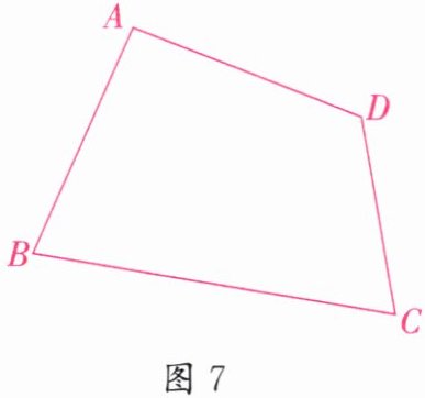 李村有一个呈四边形的池塘,如图 7 所示,在它的四个顶点 $A$,$B$,$C$,$D$ 处各有一棵大树。李村准备开挖池塘改建成养鱼池。要使鱼池的面积扩大一倍又想保持四棵大树不动,并要求扩建后的鱼池成平行四边形形状。请问,李村能否实现这一设想?若能,请你设计方案并画图;若不能,请说明理由。