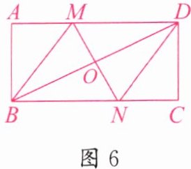 2. 如图 6,在矩形 $ABCD$ 中,对角线 $BD$ 的垂直平分线 $MN$ 与 $AD$ 相交于点 $M$,与 $BD$ 相交于点 $O$,与 $BC$ 相交于点 $N$,连接 $BM$,$DN$。
