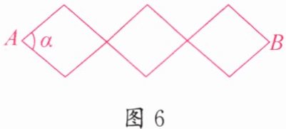 1. 如图6,活动衣帽架由三个菱形组成,利用四边形的不稳定性,调整菱形的内角α,使衣帽架拉伸或收缩。当菱形的边长为18cm,α= 120°时,A,B两点的距离为______cm。