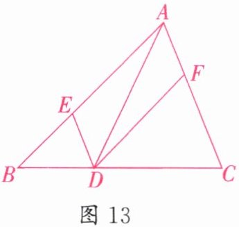 2. 如图13,在△ABC中,点E,D,F分别在边AB,BC,CA上,且DE//CA,DF//BA。下列四种说法: