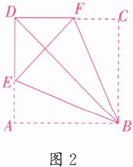2. 如图2,将正方形纸片ABCD折叠,使边AB,CB均落在对角线BD上,得折痕BE,BF,则∠EBF的大小为( )。