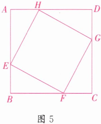 6. 如图5,正方形ABCD中,E,F,G,H分别为四条边上的点,并且AE= BF= CG= DH。四边形EFGH是何种特殊的四边形?请证明。