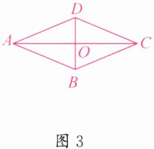 4. 如图3,在菱形ABCD中,点O为对角线AC,BD的交点,且在△AOB内,OA= 12,OB= 5,则菱形ABCD两对边的距离h= ______。