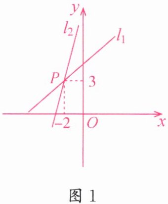 3.如图1,一次函数$y= k_{1}x+b_{1}的图象l_{1}与y= k_{2}x+b_{2}的图象l_{2}$相交于点P,则方程组$\left\{\begin{array}{l} y= k_{1}x+b_{1},\\ y= k_{2}x+b_{2}\end{array} \right. $的解是( ).
