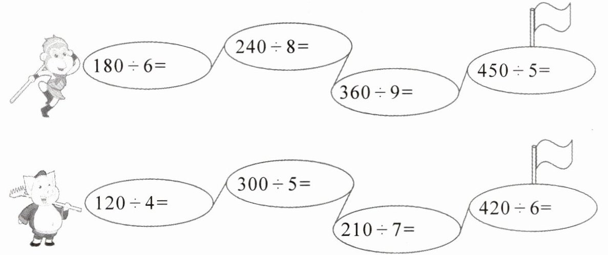 $801÷(3×3)$ $120-80÷4$ $(43+32)÷5$
