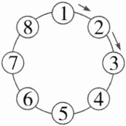 观察传球游戏可知,8位队员围成一圈传球,报数也是从1开始连续进行。