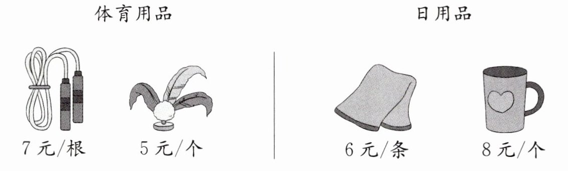 1. 王阿姨买一种体育用品用去98元,买一种日用品用去136元。她买了哪种体育用品?哪种日用品?各买了多少?
