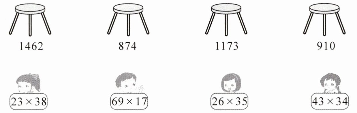 解析:本题考查两位数乘两位数的计算方法,通过计算下方算式的结果,再与上方数字相连。