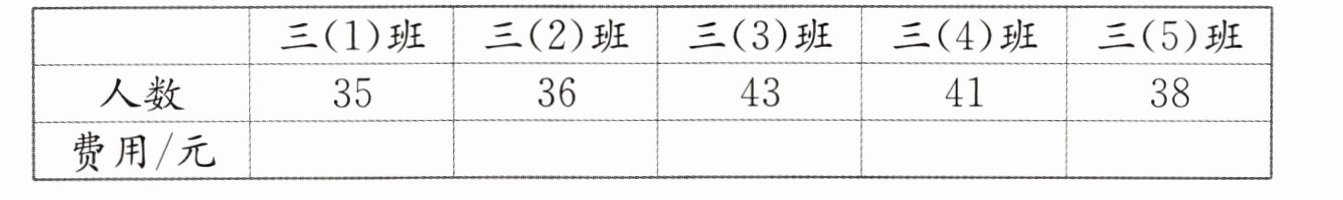 学校组织三年级学生去看科技展览,每张入场券18元,请你计算每个班的费用,并填在下表中。