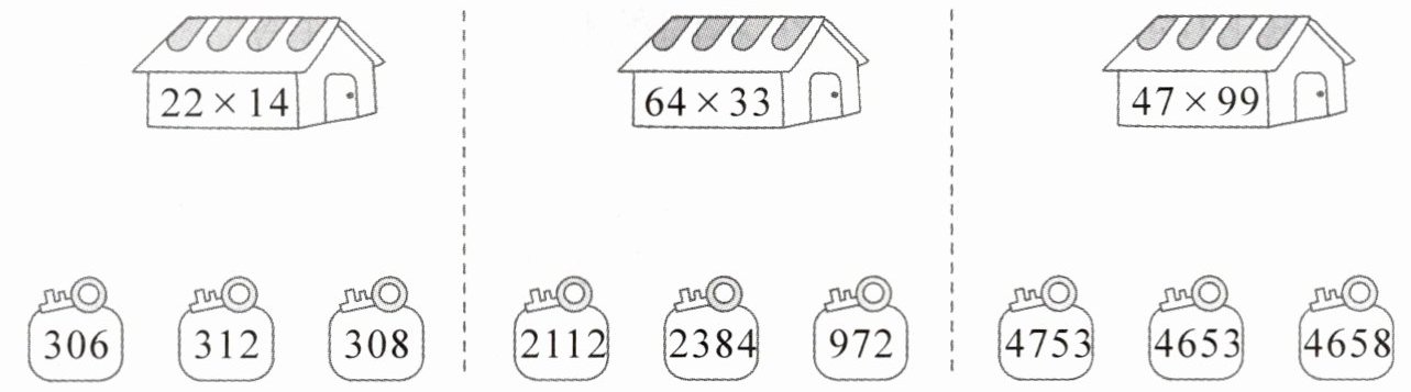 二、不计算,请你帮小房子找到合适的钥匙。(连一连)