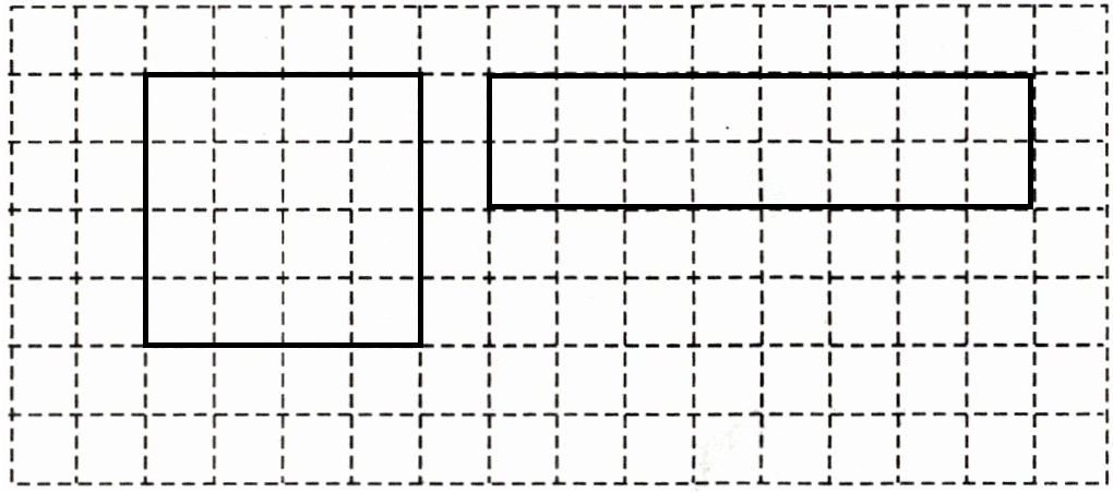 1. 在下面方格纸上分别画出周长为12厘米的长方形和正方形,然后比较它们的面积,你发现了什么?