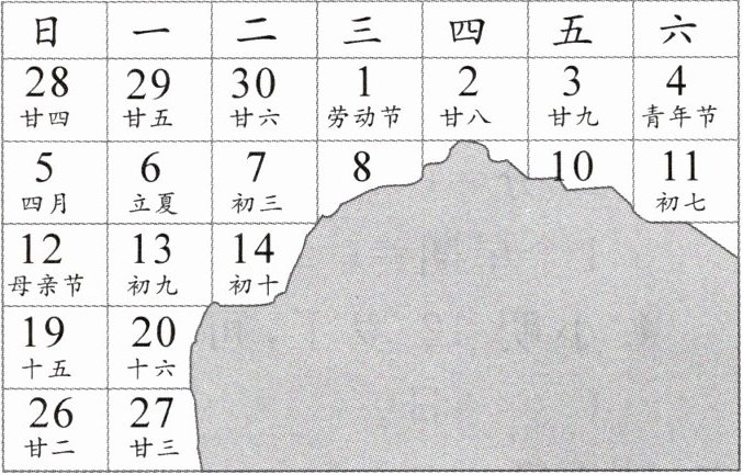 下面是一张被弄污了的月历,你能根据这张月历推算出儿童节是星期几吗?