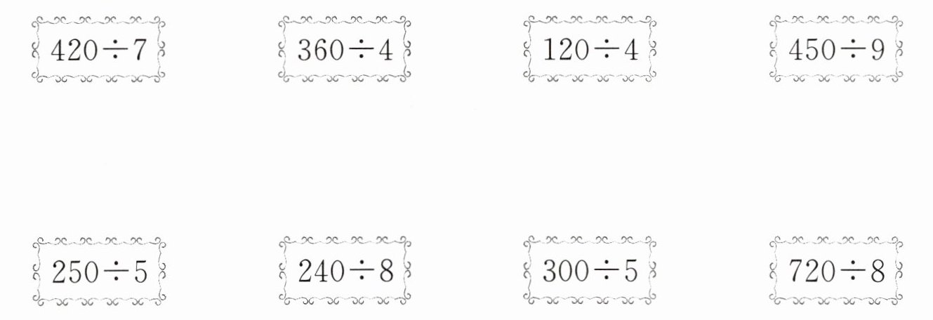 答案:$420÷7$——$300÷5$;$360÷4$——$720÷8$;$120÷4$——$240÷8$;$450÷9$——$250÷5$。