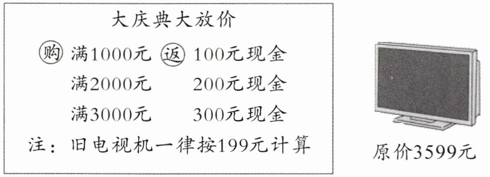 明明家以一台旧电视机换购一台新电视机,应付多少钱?