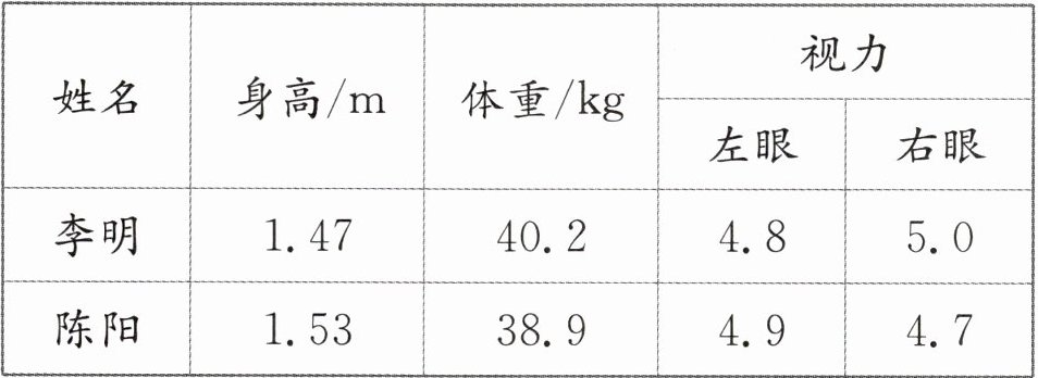 四、下面是李明和陈阳两位同学的体检记录表,根据记录表回答问题。