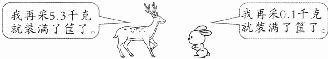 一筐蘑菇重 5.4 千克。小鹿采了 0.1 千克蘑菇,小兔采了 5.3 千克蘑菇。