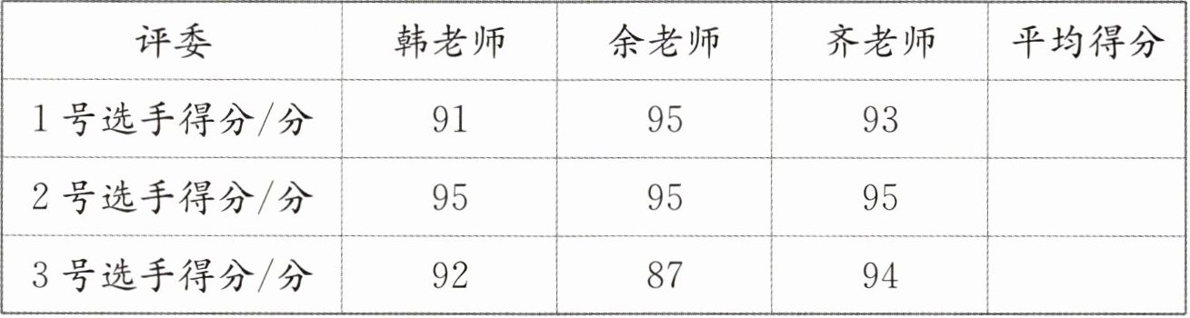 (注:因图片无法直接显示,根据答案推测表格中三位选手的平均成绩依次为