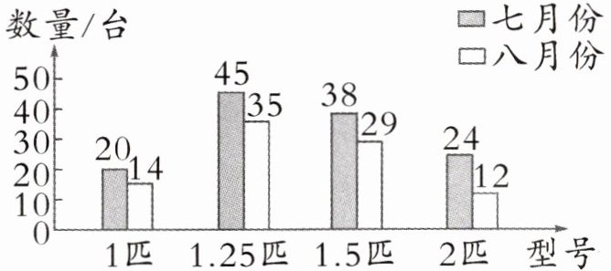 下面是某空调专卖店七、八月份出售各种规格的空调数量统计图。