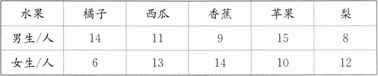 下面是某校四年级学生喜欢吃的水果情况统计表。