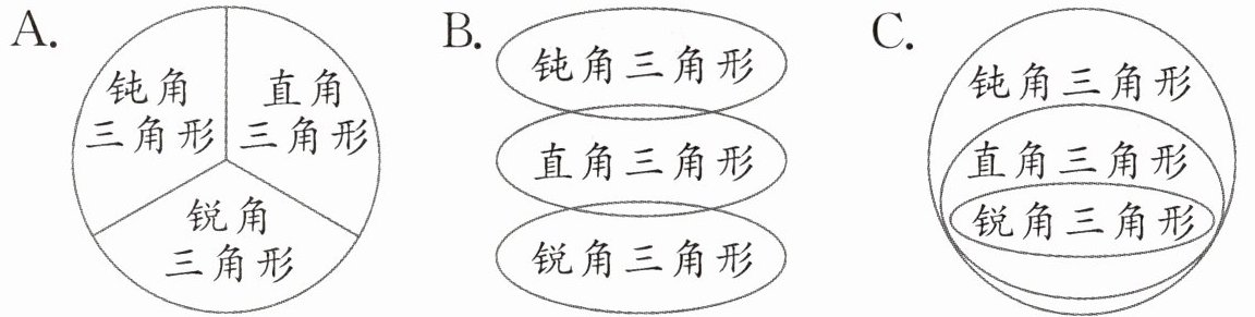 2. 在下面各图中,每个三角形都只露出了一部分,根据每个三角形露出的部分,不能判断出这个三角形一定是哪一类三角形的是(