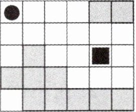 3. 你玩过推箱子的游戏吗? 如图,箱子只能向上或向左移动,怎样移动箱子才能使它放在●上? (涂色部分是墙,■代表箱子)