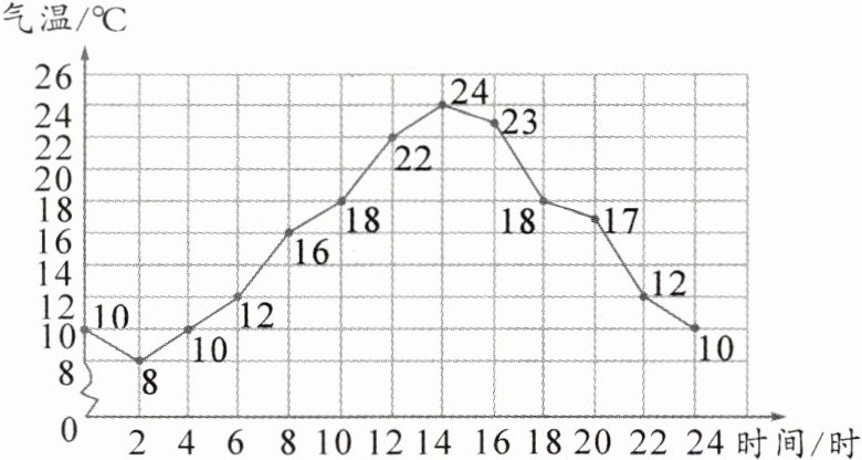 C.这一天中只有 14 时至 24 时之间的气温在逐渐降低