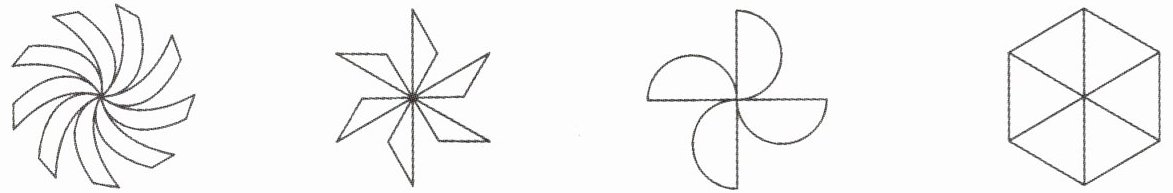 1. 下面这些漂亮的图案是由哪个基本图形旋转得到的?请涂上颜色。
