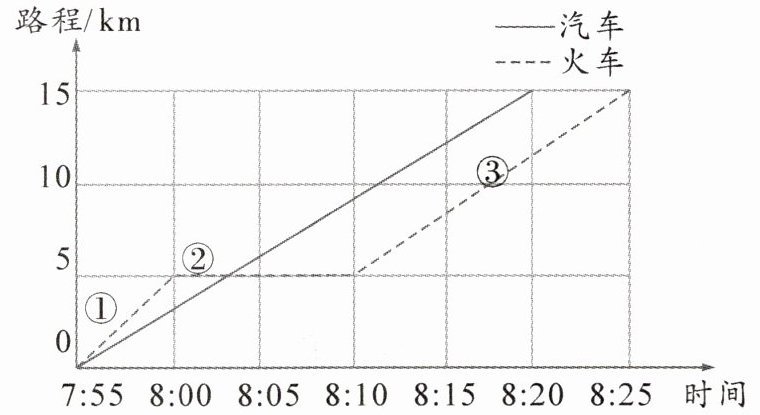 下面是一辆汽车与一列火车的行程图,根据图示回答问题。