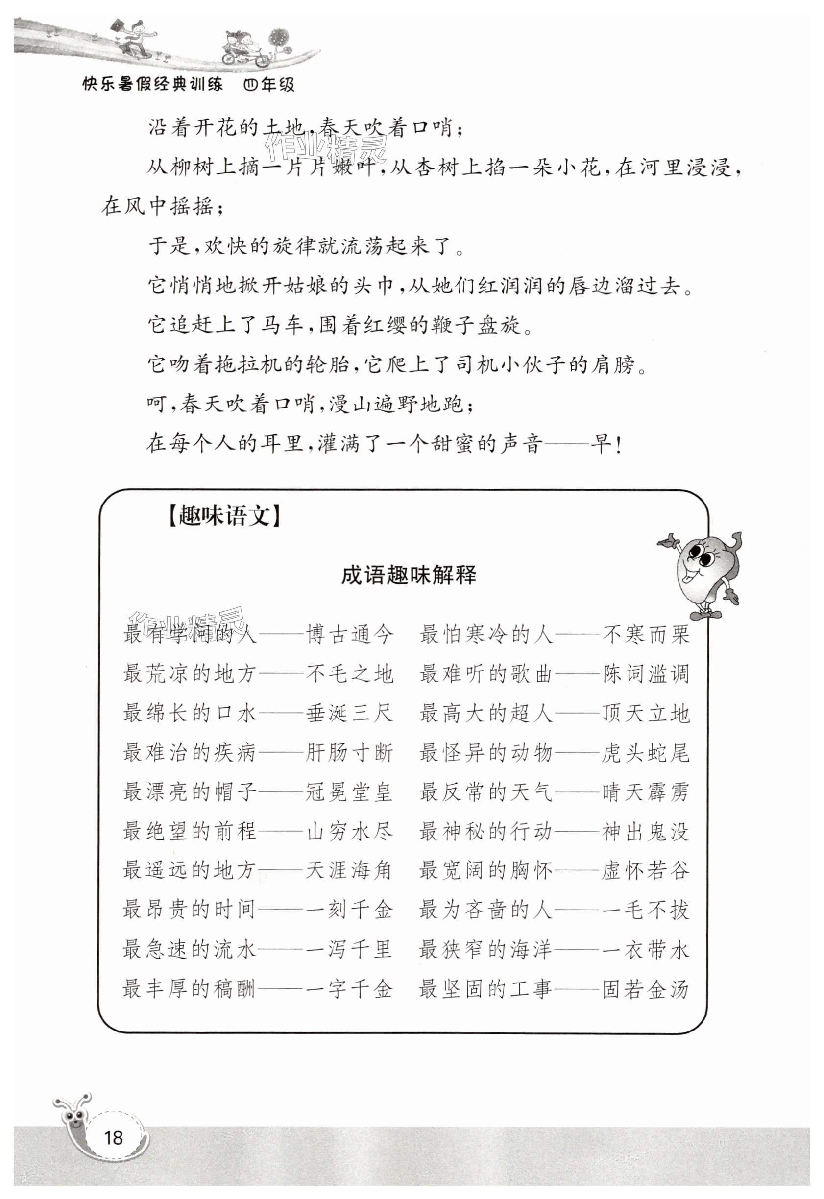 注:目前有些书本章节名称可能整理的还不是很完善,但都是按照顺序排列的,请同学们按照顺序仔细查找。练习册 2025年快乐暑假经典训练四年级语文 答案主要是用来给同学们做完题方便对答案用的,请勿直接抄袭。