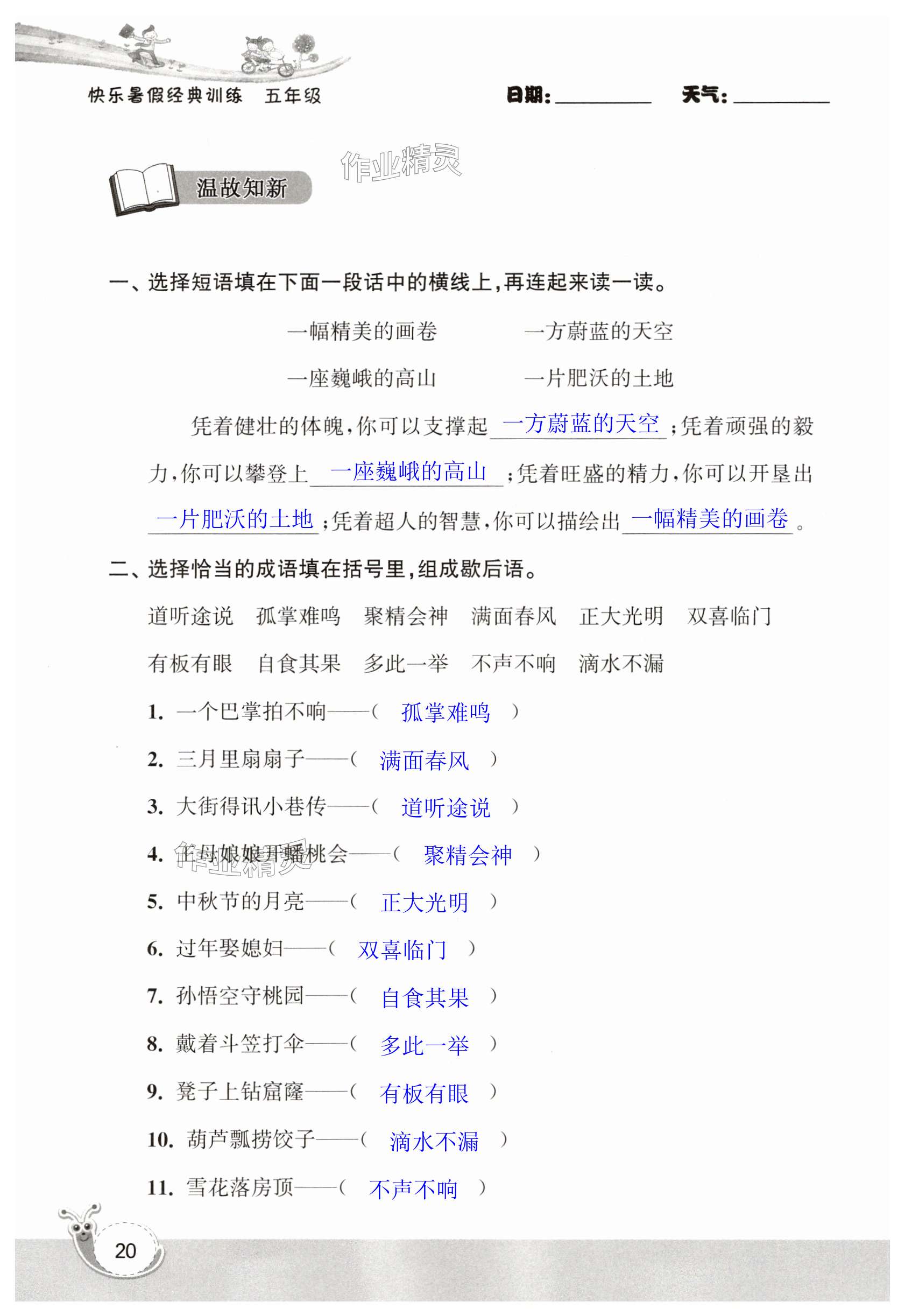 注:目前有些书本章节名称可能整理的还不是很完善,但都是按照顺序排列的,请同学们按照顺序仔细查找。练习册 2025年快乐暑假经典训练五年级语文 答案主要是用来给同学们做完题方便对答案用的,请勿直接抄袭。