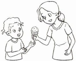 2. 图中妈妈给孩子冰淇淋,符合“我很热,妈妈。——给你一个冰淇淋”的对话。