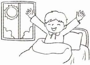 4. 图中窗外有太阳,孩子在床上伸懒腰,看起来是刚起床,而非准备睡觉,与“该睡觉了,蒂姆。——晚安,妈妈”不符。