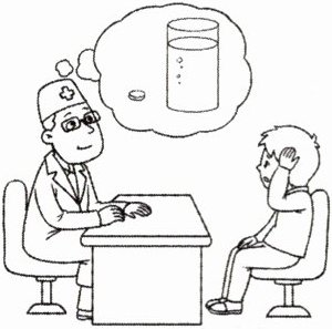 1. 第一段对话是在医生和病人之间展开的。从图片以及对话内容可以推测出,病人说自己头疼,医生让病人吃了药并喝水。