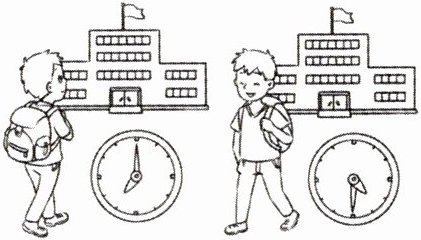 2. "go to school"是经常性动作,用"usually";早上七点上学,所以是"morning";询问回家时间用"When";图片中回家时钟显示5点半,即"five thirty",下午回家,所以是"afternoon"。