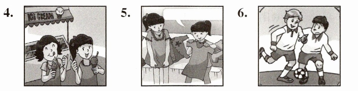 4. 图4中两人在冰淇淋店前开心地拿着冰淇淋,与句子“We like summer. We like ice creams, too.”相符。