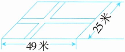 2. 一块麦田被两条 1 米宽的水渠分成了 4 块(如下图所示)。麦田的实际面积是多少平方米?