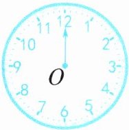 6. 如右图,指针从“12”绕点O顺时针方向旋转( )到“3”,指针从“3”顺时针方向旋转$180^{\circ }$到“( )”。