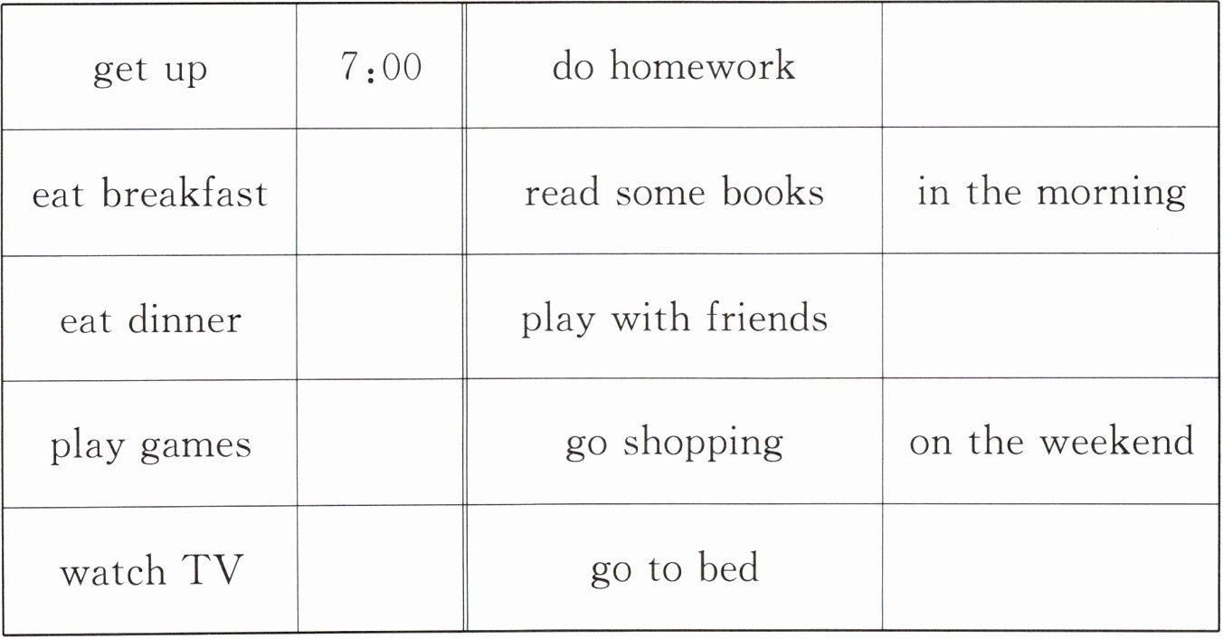六、暑假开始了,你打算怎样度过这个暑假呢?快来完成下面的作息表吧!