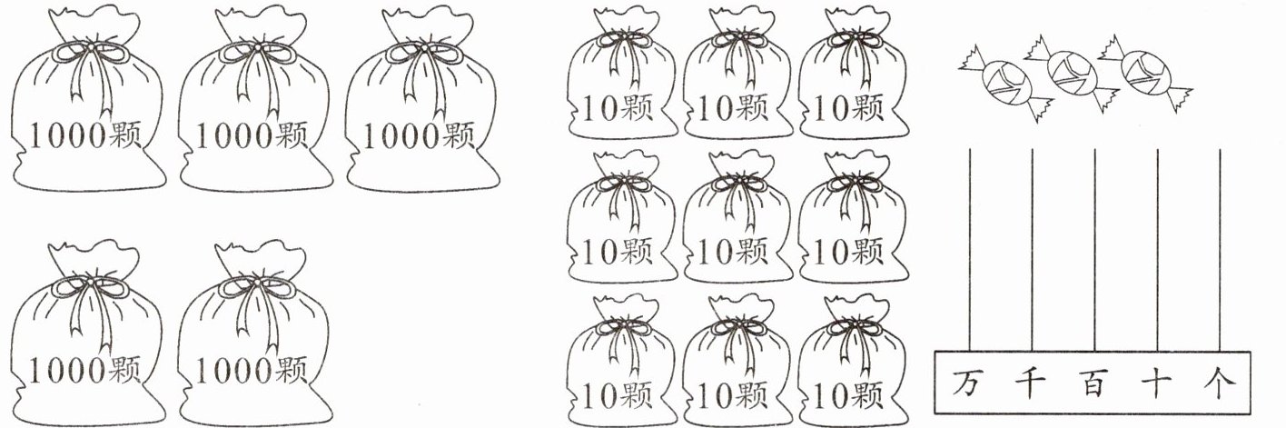 四、一共有多少颗糖?把这个数在计数器上表示出来。