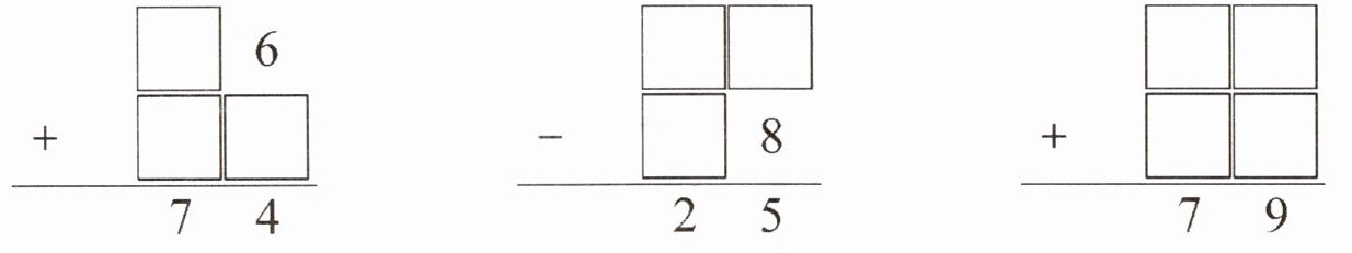 2. 从1~9中选出合适的数字填入下面的$\square$中,注意每个竖式中的数字不重复。